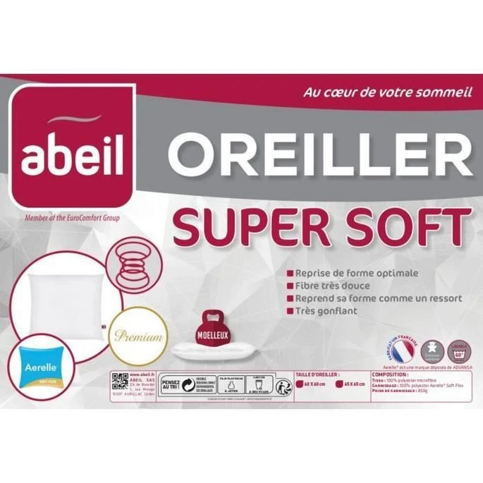 ABEIL Oreiller Moelleux SUPERSOFT 60x60cm