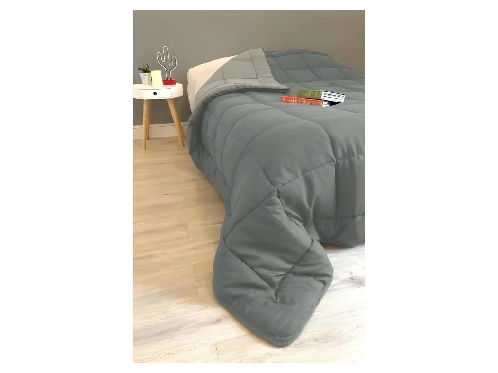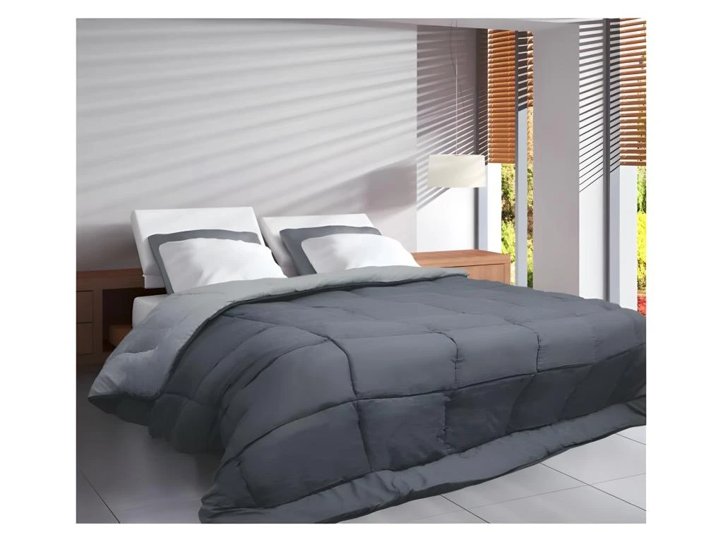 Couette microfibre 100% polyester fibres creuses siliconées 140×200 acier/argent