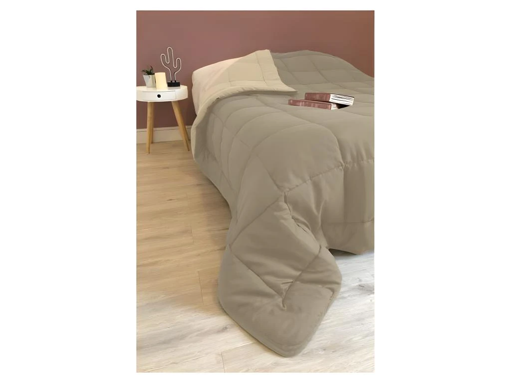 Couette microfibre 100% polyester fibres creuses siliconées 140×200 taupe/lin