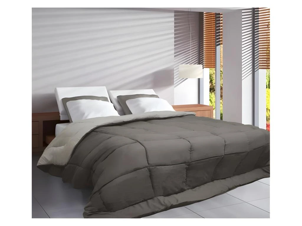 Couette microfibre 100% polyester fibres creuses siliconées 240×260 taupe/lin