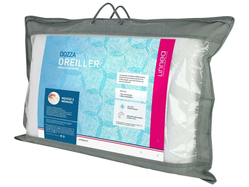 OREILLER mousse à mémoire de forme moulée avec enveloppe déhoussable. Livré avec housse Cristal. La collection DOZZA est fabriquée en France.