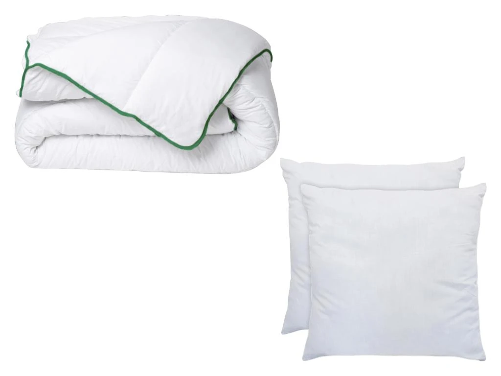 Grâce à la couette AZYLIA, vos nuits seront profondes. En effet, sa finition biais vert jade et son garnissage 300g/m² en polyester vous garantissent chaleur tempérée, résistance et esthétisme. Les oreillers et leur garnissage de 500 grammes vous offriront un confort supérieur et une résistance indéniable.